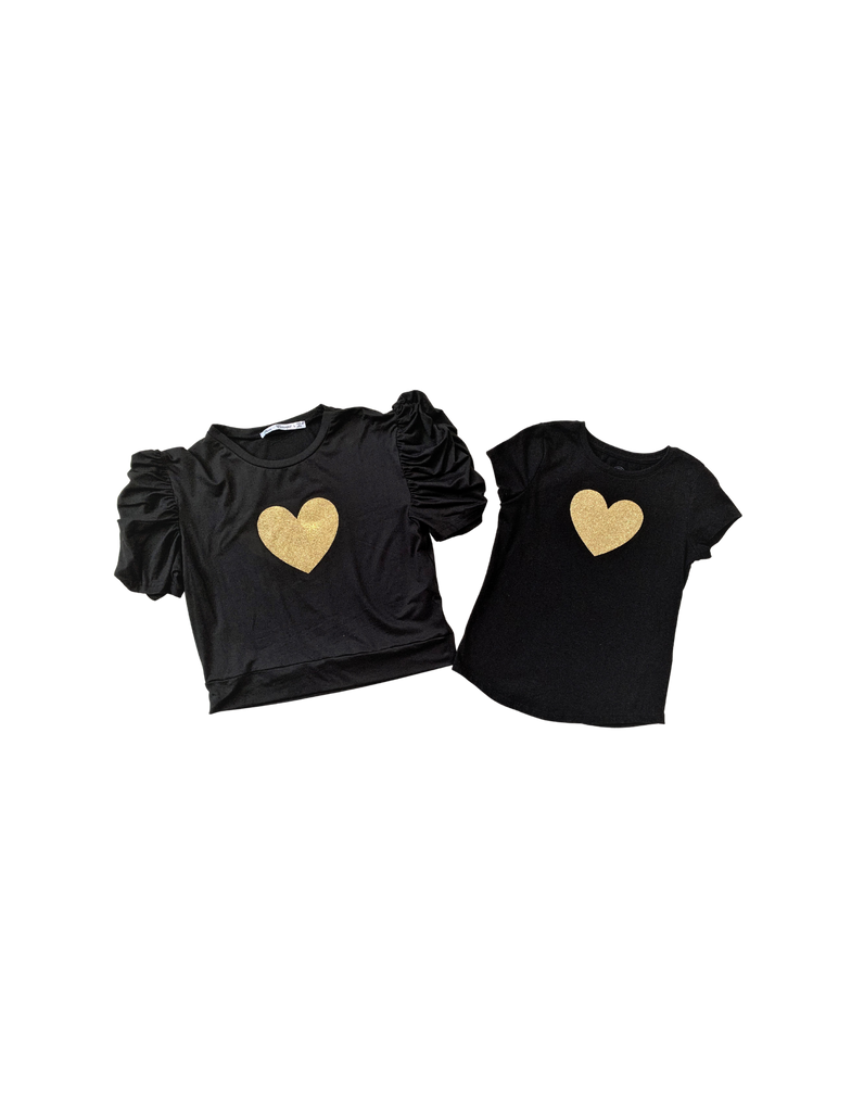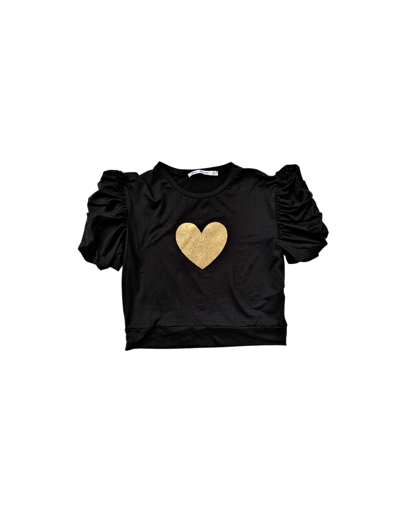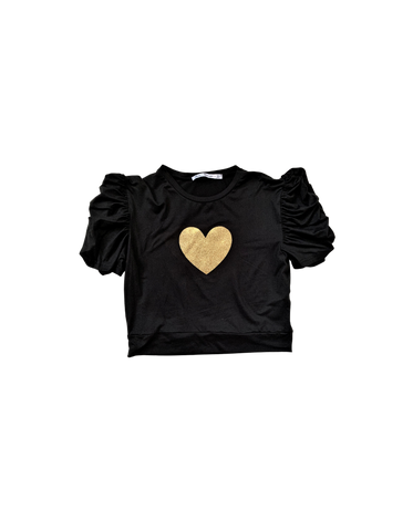 Women's blouse with a gold heart decoration. Fitted blouse and above the waist. I recommend a larger size.